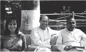 『图解:90年代后期,托马斯老师夫妇与雷迪祥(Radheshyam)老师(右)摄于印度法岗。雷迪祥老师是葛印卡老师的弟弟,于2007年去世。他毕生致力于与大藏经数位化、网络化,并协助发展内观研究所。』